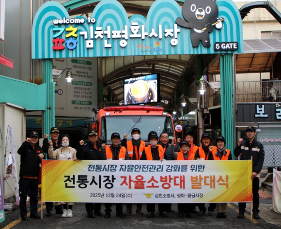 |  | | | ⓒ 김천내일신문 | | 김천소방서(서장 송영환)는 12월24일, 김천시 평화시장에서 '전통시장 자율소방대 발대식'을 개최하고 전통시장 화재 예방 및 초기 대응 역량 강화에 나섰다.