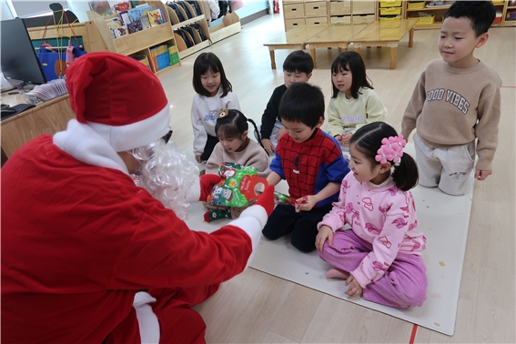 성탄의 의미를 알고 성탄의 의미와 나눔의 가치를 이야기로 풀어내는 성탄 유래 알아보기 코너에서는 이야기를 통해 배려와 사랑의 중요성을 함양시켰다. 유아들은 카드 만들기 코너에서 다양한 재료로 나만의 카드를 만들고 정성껏 편지를 쓰는 모습도 보였다. 행사 마지막에 산타할아버지가 등장하여 유아 한 명 한 명에게 선물을 전달하며 크리스마스 분위기가 더욱 고조되었다. 이번 행사에 참여한 만 3세 유아는 “어떤 선물인지 너무 궁금해요.” 라고 하였고 만 5세 유아는“앞으로도 친구들도 잘 도와주고 좋은 일을 많이 할 거에요.”라는 소감을 밝혔다. 봉계초등학교 관계자는“이번 행사를 통해 유아들이 사랑과 나눔, 감사를 느끼는 시간이 되었기를 바란다.” 라고 전했다. |