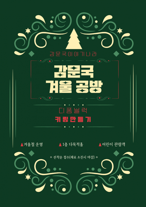 ‘감문국 겨울 공방’은 겨울과 연말 분위기에 어울리는 크리스마스 키링 만들기 체험 프로그램으로 누구나 부담 없이 참여할 수 있도록 기획된 체험 콘텐츠이다. 특히 어린이 관람객을 대상으로 난이도를 낮추고 완성 후 기념품으로 가져갈 수 있도록 구성해 가족 단위 방문객에게 높은 만족도를 제공할 것으로 기대된다.