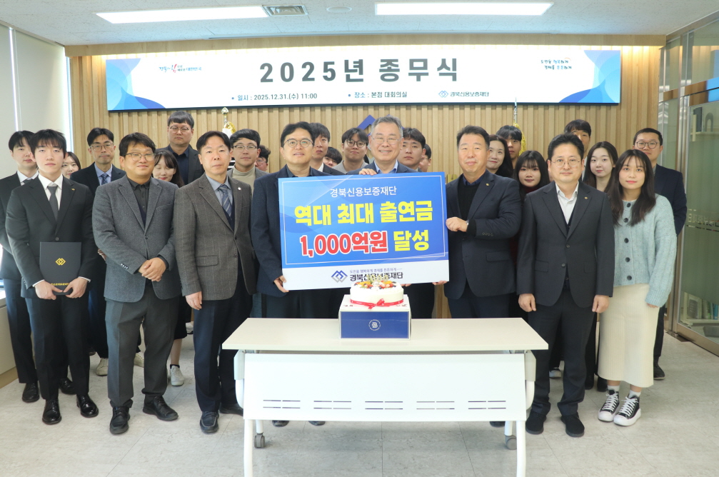 | 경북신용보증재단은 12월 31일 본점 회의실에서 전 직원이 참석한 가운데 2025년 종무식을 개최했다고 밝혔다.
