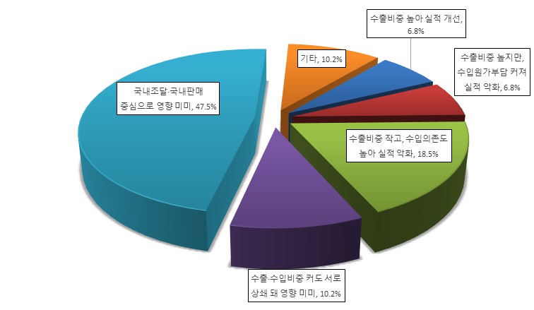 |  | | | ⓒ 김천내일신문 | | 김천상공회의소(회장 안용우)가 최근 김천지역 관내 61개 제조업체를 대상으로 실시한 2026년 1/4분기(1월~3월) 기업경기전망지수를 조사한 결과 지난 분기 48.4에서 13.9포인트 상승한 62.3을 나타냈다. 2026년 1/4분기 BSI지수가 지난 분기보다 상승하였지만, 기업들이 예상하는 경기전망이 ‘호전’될 것이라고 답한 기업보다 ‘악화’될 것이라고 답한 기업이 훨씬 많았는데, 그 원인을 살펴보면 원자재가격변동, 인건비 부담 등을 주된 이유로 꼽았다. 경기전망지수는 100 미만이면 다음 분기 경기가 이번 분기보다 나빠질 것으로 보는 기업이 더 많은 것이고, 100을 넘어서면 그 반대다. 업종별로 기계(25.0), 비금속광물(33.3), 섬유(50.0), 목재·제지(71.4), 음·식료품(80.0), 금속 및 화학(각각83.3) 업종이 기준치인 100보다 낮은 수치를 나타냈으며, 전기·전자(133.3) 제조업은 기업경기가 전분기보다 호전될 것으로 조사됐다. 조사대상 업체의 매출실적은 연초 목표 대비 어느정도 인가 물음에 ‘10%이상 미달’(36.1%), ‘10%이내 미달’(32.8%), ‘연간목표 달성’(18.0%) , ‘10%이상 초과달성’(8.2%), ‘10%이내 초과달성’(4.9%)으로 답했고,영업이익은 연초 목표대비 어느정도인가 물음에는 ‘10%이상 미달’(36.7%), ‘10%이내 미달’(33.3%), ‘연간목표 달성’(20.0%), ‘10%이내 초과달성’(6.7%), ‘10%이상 초과 달성’(3.3%)으로 답했다. 조사대상 업체의 올해 영업이익에 가장 부담되었던 요인은 무엇인가 물음에 ‘원자재가격변동’(48.1%), ‘인건비 부담’(32.4%), ‘환율요인’(8.8%), ‘관세·통상비용 및 기타’(각각3.9%), ‘설비·연구 등 투자 확대’(2.9%)로 답했다. 환율 상승은 수출가격 하락에 따른 매출증가 효과가 있는 반면, 원자재 수입가격 상승이라는 부작용도 있는데, 현재와 같은 고환율 상황이 경영실적에 미치는 영향이 무엇인지 질문에 ‘국내조달·국내판매 중심으로 영향 미미’(47.5%), ‘수출비중 작고, 수입의존도 높아 실적 약화’(18.5%), ‘수출·수입비중 커도 서로 상쇄돼 영향 미미’(10.2%), ‘수출비중 높아 실적 개선’, ‘수출비중 높지만, 수입원가부담 커져 실적 약화’ (각각 6.8%), ‘기타’(10.2%)로 답했다. 내년(2026년) 한국경제의 전반적인 경기흐름이 올해 대비 어떻게 변화할 것으로 전망하는지 물음에 ‘올해와 비슷’(31.1%), ‘소폭둔화’(24.6%), ‘올해보다 소폭개선’(23.0%), ‘올해보다 뚜렷한 약화’(21.3%) 로 조사됐다. 이어서 내년도 내수실적 목표치를 올해 실제 달성한 실적대비 어느수준으로 설정하였는지 질문에 ‘올해 실적수준’(35.0%), ‘10%미만 확대’(26.7%), ‘10%이상 확대’(16.7%), ‘10%이상 축소’(13.3%), ‘10%미만 축소’(8.3%)로 나타났으며,수출실적 목표치는 올해 실제 달성한 실적대비 어느수준으로 설정하였는지 물음에는 ‘올해 실적수준’(46.5%), ‘10%미만 확대’(20.9%), ‘10%이상 축소’(16.3%), ‘10%이상 확대’(14.0%), ‘10%미만 축소’(2.3%)로 답했다. 조사 업체의 내년도 경영계획의 핵심 기조는 무엇인지 물음에 ‘안전(유지)경영’(63.5%), ‘확장(성장)경영’(20.6%), ‘축소경영’(15.9%)으로 답했으며,내년도 경영계획 수립에 가장 큰 영향을 미친 핵심 변수는 무엇인지에는 ‘경기·수요전망’(63.5%), ‘비용·수익성 요인’(15.9%), ‘대외 통상리스크’ 및 ‘기업내부사정’(각각 7.9%), ‘정책·규제환경 변화’(4.8%) 로 조사됐다. 조사 업체의 내년도 한국 경제 성장을 견인할 주요 긍정 요인은 무엇이라고 생각하는지 물음에 ‘금리인하 및 금융여건 완화’(18.9%), ‘국내기업 투자 확대’(17.1%), ‘고환율 해소’(15.3%), ‘수출호조 지속’(14.5%), ‘정부 확장재정 기조’(12.6%), ‘기업규제 완화’ 및 ‘민간소비 활성화’(각각 10.8%)로 대답했다. 위 질문에 이어 내년도 한국 경제 성장을 제약하는 하방 요인은 무엇인지 물음에 ‘유가·원자재가 변동성’(23.3%), ‘글로벌 경기 둔화’(19.0%), ‘트럼프發 통상 불확실성’(18.1%), ‘고환율 및 변동성 확대’(17.2%), ‘기업부담 입법강화’(15.5%), ‘고령화 등 내수구조 약화’(5.2%), ‘가게부채 부담’(1.7%)순으로 답했다. 2026년 경제 활성화 및 기업 실적 개선을 위해 정부는 어떤 정책을 중점적으로 추진해야한다고 생각하는지 물음에 ‘국내투자 촉진 정책’(27.4%), ‘환율·안정화 정책’(18.6%), ‘소비활성화 정책’, ‘관세 등 통상 대응강화’(각각 16.8%), ‘위기산업 지원 정책’(11.5%), ‘AI·첨단산업육성지원책’(7.1%) ‘주식시장 활성화 정책’(0.9%), ‘기타’(0.9%)로 나타났다.
