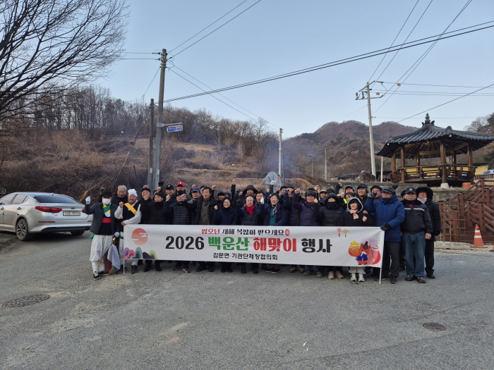 |  | | | ⓒ 김천내일신문 | | 김천시 감문면 행정복지센터(면장 최은희)는 지난1월1일 2026년 병오년 새해를 맞아 감문면의 무사 안녕과 화합을 기원하는 백운산 해맞이 행사를 추진하였다.