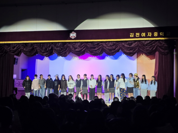 | 김천여자중학교(교장 박기욱)는 지난 1월 2일, 학교 강당에서 2025학년도 김천시 교육발전특구 시범사업의 일환인 「연극하며 놀자, 연극학교」 교내 연극발표회를 개최했다.