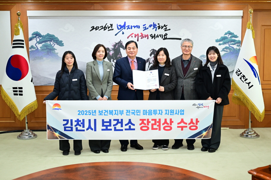 | 김천시는 시민의 정서적 안정을 위한 마음건강 정책 추진 성과를 인정받아, 2025년 보건복지부 주관 ‘전국민 마음투자지원사업’에서 지난해에 이어 2년 연속으로 우수 지자체로 선정되어 장려상을 수상했다고 밝혔다.