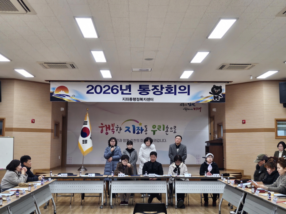 | 김천시 지좌동은 1월 9일 지좌동 행정복지센터 3층 강당에서 2026년 새해 첫 통장회의를 개최했다.