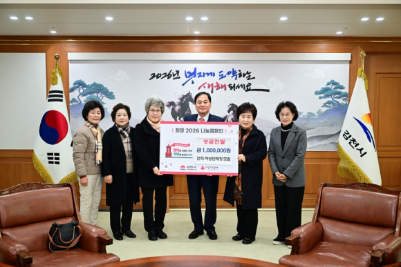 | 김천시(시장 배낙호)는 지난 1월 7일, 김천시 전직 여성 단체장 모임(회장 이정숙)으로부터 희망2026나눔캠페인 성금 100만 원을 전달받았다고 밝혔다.