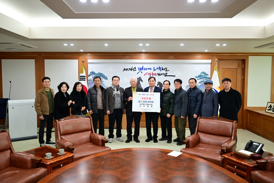 | 김천시(시장 배낙호)는 지난 1월 6일, 아포읍 송천택지개발조합(조합장 박희병)으로부터 희망2026나눔캠페인 성금 100만 원을 전달받았다고 밝혔다.