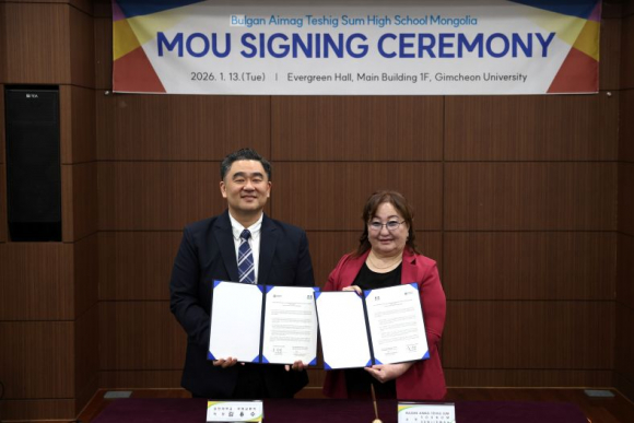 |  | | | ⓒ 김천내일신문 | | 김천대학교(총장 윤옥현)는 1월 13일 몽골 Bulgan Aimag Teshig Sum 초중고등학교와 교육협약(MOU)을 체결하고, 현지 교육 관계자들을 초청해 대학의 교육 인프라를 직접 경험하는 ‘스터디 투어’를 성공적으로 진행했다고 밝혔다. 이번 협약은 현지 교육기관 실무진과의 긴밀한 소통 체계를 구축하여 유학생 모집과 실질적인 국제교류 성과를 확대하기 위해 마련되었다. 양 기관은 이번 협약을 통해 ▲양국 교육 시장의 경쟁력 향상을 위한 상호 노력 ▲우수 인재 배출을 위한 교육 환경 및 체제 공유 ▲김천대학교의 우수한 교육 서비스 제공 및 현지 활동 지원 등에 대해 적극적으로 협력하기로 했다. 특히 김천대학교는 Bulgan Aimag Teshig Sum 학교 출신의 몽골 유학생들에게 대학의 특성화된 교육 커리큘럼을 제공하고, 몽골 Bulgan Aimag Teshig Sum 초중고교는 김천대학교가 몽골 현지에서 교육 서비스를 원활히 수행할 수 있도록 행정적·실무적 지원을 아끼지 않을 예정이다.