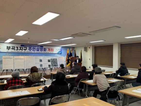 | 김천시는 2026년 지적재조사사업 실시계획에 따른 사업지구 지정을 위하여 1월 13일 평화동 보훈회관에서 부곡3지구 토지소유자 및 이해관계인 등을 대상으로 주민설명회를 개최했다.
