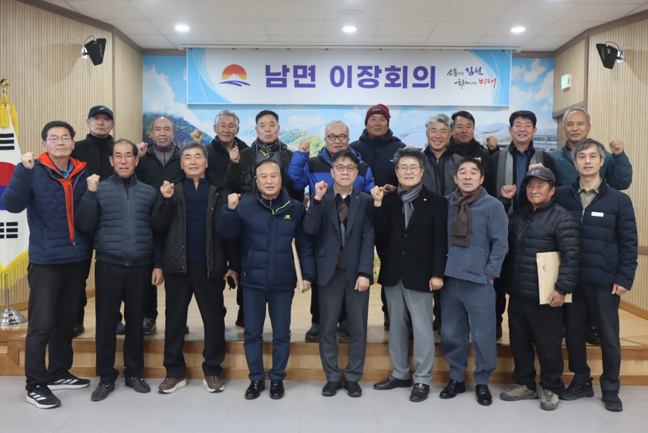 | 김천시 남면(면장 정명수)에서는 지난 1월 20일 남면 행정복지센터 3층 강당에서 2026년 1월 이장회의를 열고 새해 힘찬 출발을 위한 의지를 다졌다.