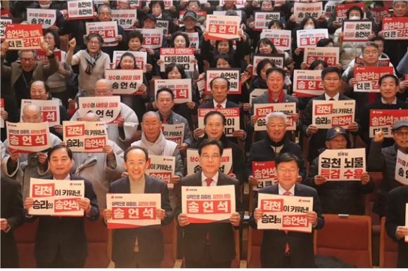 또한, 송언석 국회의원은 국민의힘 원내대표로서 이재명 정부와 여당의 부동산 정책 실패, 고환율·고물가·고금리로 대표되는 ‘3고(高) 위기’, 통일교 게이트, 공천 뇌물 의혹, 야당 탄압 특검 등의 문제점을 강도 높게 지적하고, 시민들과 함께 통일교 특검과 공천 뇌물 특검 수용을 촉구하는 규탄대회를 진행했다.