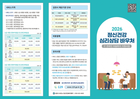 김천시, 정신건강 심리상담 바우처로 시민 마음 돌본다
