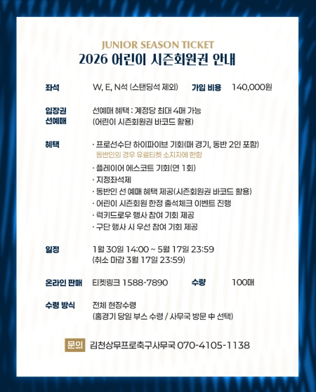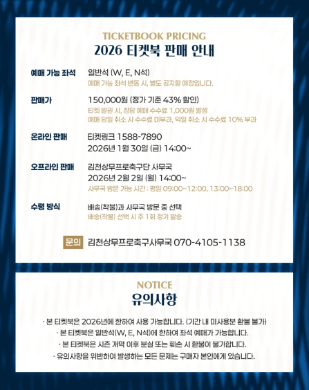 김천상무, 2026 시즌회원, 어린이 시즌회원, 티켓북 판매 시작