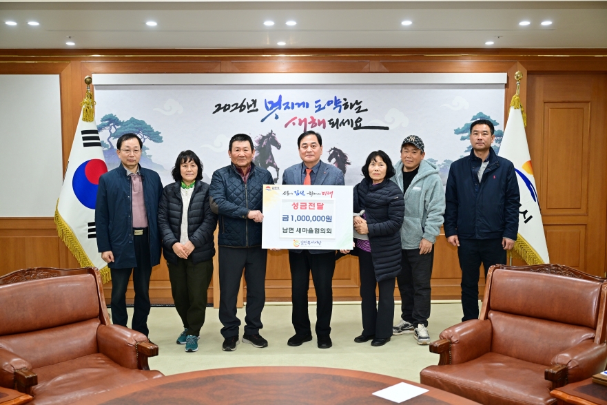 | 남면 새마을협의회(회장 권순범, 부녀회장 나계월)는 지난 2월 2일 지역 내 어려운 이웃을 돕기 위해 김천복지재단에 성금 100만 원을 기탁하며 온정의 손길을 전했다.