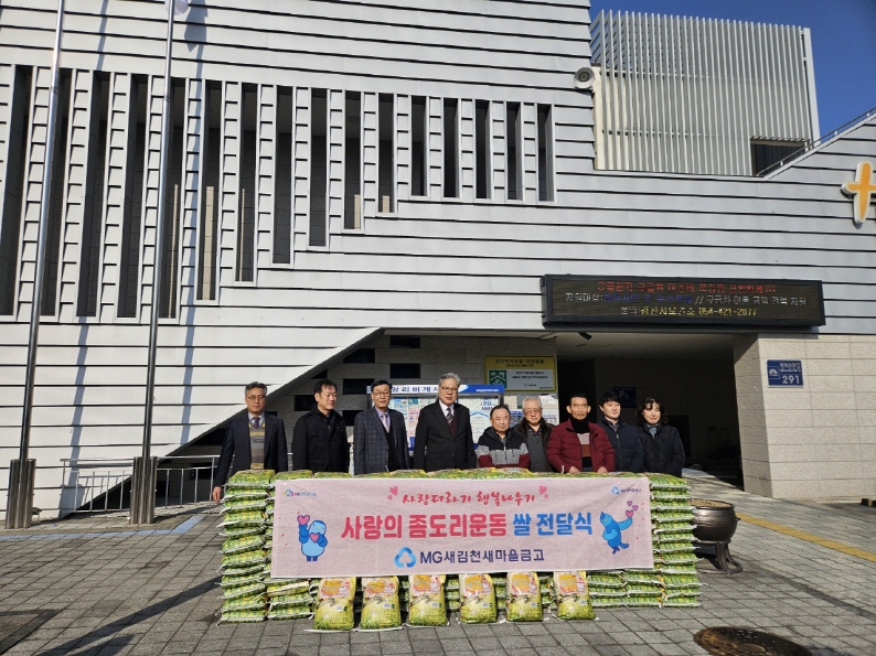 | 새김천새마을금고(이사장 김상섭)는 지난 2월 5일 지역 내 소외된 이웃을 돕기위한 「사랑의 좀도리 운동」쌀 전달식을 진행했다.