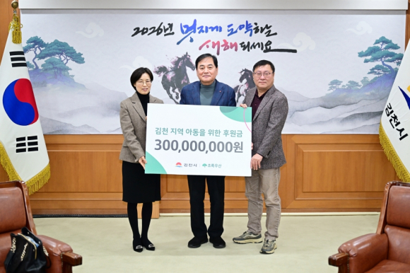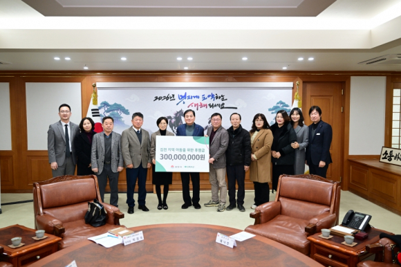 | 김천시(시장 배낙호)는 지난 2월 10일 초록우산어린이재단 경북지역본부(본부장 박정숙), 김천후원회(회장 전광득)와 함께 지역 아동을 위한 약정 후원금 3억 원 전달식을 개최했다.