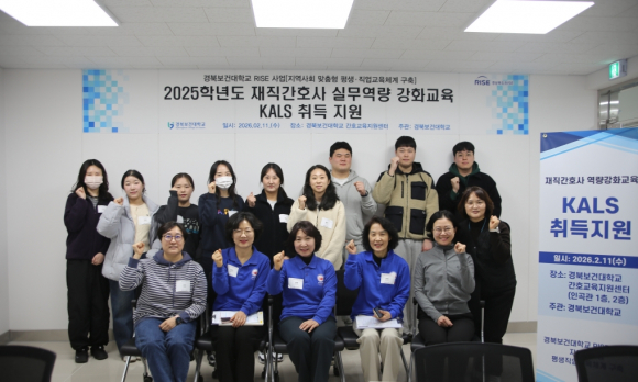 | 경북보건대학교(총장 이은직)는 지난 2월 11일, 경상북도 소재 종합병원 재직간호사를 대상으로 한 ‘2025학년도 재직간호사 실무역량 강화교육 – KALS 취득지원 프로그램’을 교내 간호교육지원센터에서 성공적으로 운영했다고 12일 밝혔다.