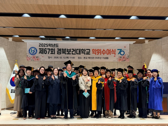 | 경북보건대학교(총장 이은직)는 2월 12일 교내 목인관 70주년기념홀에서 「제67회 경북보건대학교 학위수여식」을 개최했다.