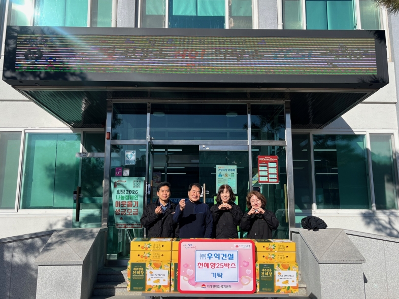 | 지례면 ㈜우익건설(대표 이흥기)은 설 명절을 맞아 지례면 행정복지센터를 방문해 경로당 어르신들에게 전달해 달라며 천혜향 25상자를 기탁했다.