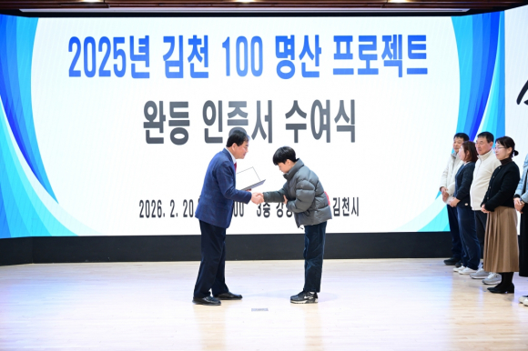 | 김천시는 지난 2월 20일 시청사 3층 대강당에서 『2025년 김천 100명산 프로젝트』 완등자 인증서 수여식을 개최했다.