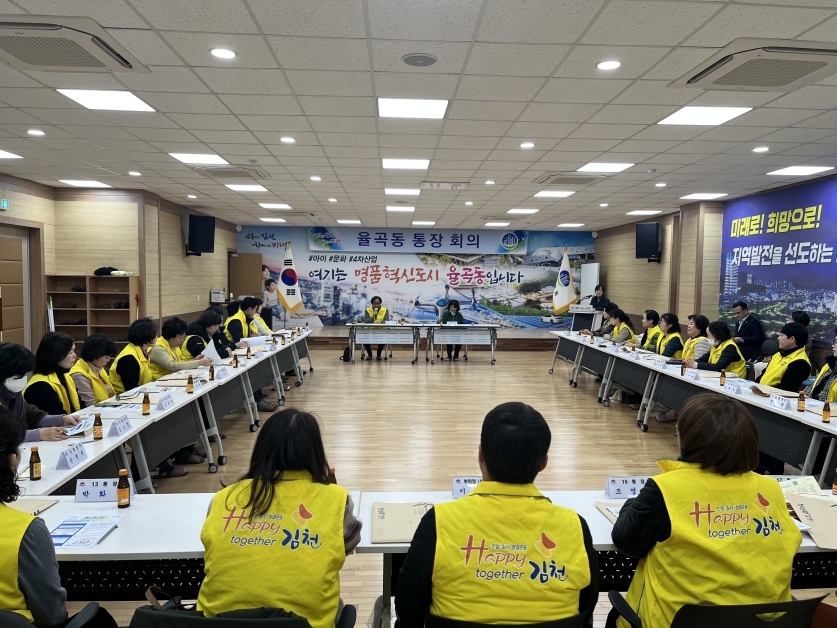 | 김천시 율곡동 행정복지센터(동장 이순영)는 2월 24일 율곡동행정복지센터 2층 회의실에서 통장회의를 개최하고 지난 1월에 이어 ‘살기 좋은 율곡동’을 위한 우리 마을 가꾸기 활동을 펼쳤다.