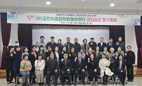| (사)김천시종합자원봉사센터(센터장 김경희)는 지난 2월 24일, 김천시평생교육원 3층 강당에서 2026년 정기총회를 개최했다.