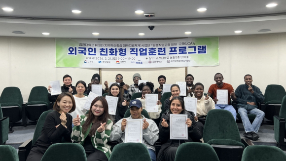 | 김천대학교(총장 윤옥현) RISE LCA 사업단에서 운영한 ‘외국인 친화형 직업훈련 프로그램’이 교육생들의 뜨거운 호응 속에 마무리되었다.