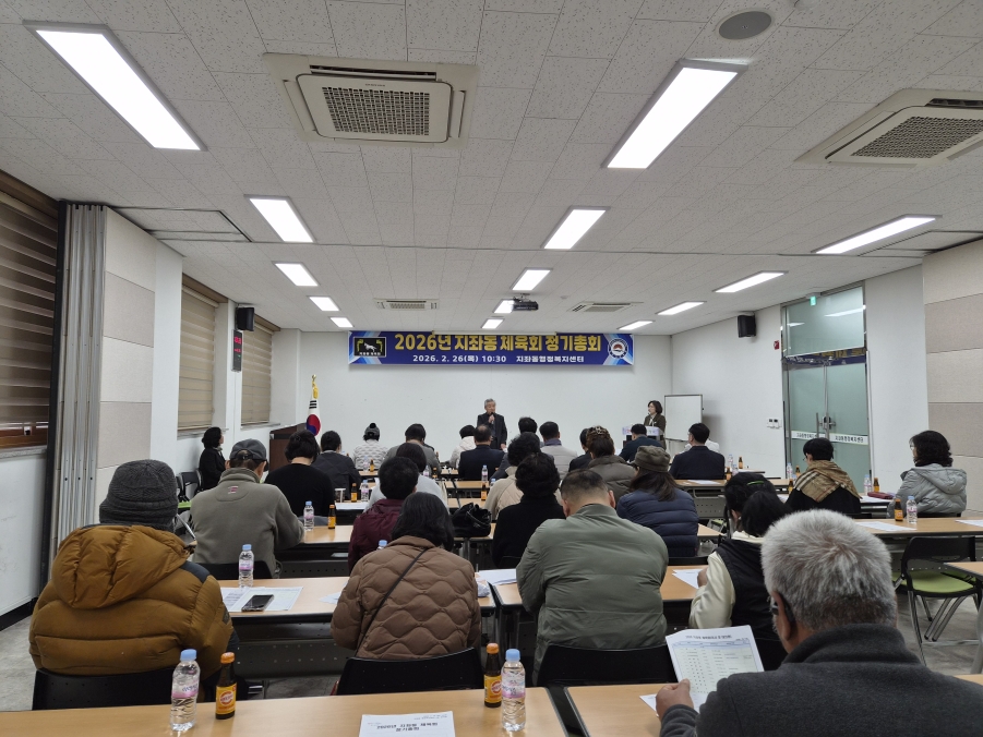 | 김천시 지좌동 체육회(회장 김기옥)는 2월 26일 지좌동 행정복지센터 2층 회의실에서 2026년 정기총회를 개최했다.