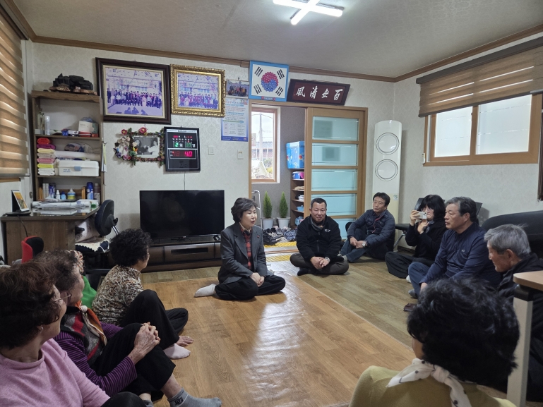 이번 방문에서는 새해를 맞아 어르신들께 세배를 드리고 건강과 안부를 살피며 덕담을 나누는 따뜻한 소통의 시간을 가졌다. 또한, 마을 현안에 대한 의견을 청취하고, 겨울철 막바지 경로당의 난방과 안전 등을 꼼꼼히 점검했으며, 정월대보름을 앞두고 영농폐기물 소각 금지 등 산불 예방에 대한 경각심을 높이는 홍보활동도 병행했다.