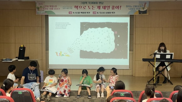여름방학 기간에 그림책 작가를 직접 만나 소통하는 「책으로 노는 게 제일 좋아!」 프로그램에서는 공연 관람, 그림책 제작 과정 배우기, 독후 체험활동 등을 통해 문학적 상상력을 높이고 창의력을 키울 수 있다.