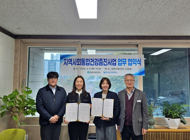 | 경북보건대학교(총장 이은직)는 김천시 보건소(소장 황훈정)와 협력해 지역사회 건강증진 사업을 확대하고, 지역 보건 현장에서 성장하는 정주형 보건·의료 인재 양성에 나선다고 밝혔다.