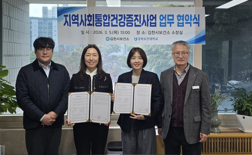 | 김천시보건소와 경북보건대학교는 지난 3월 5일, 지역사회 건강증진과 실무형 간호보건 인재 양성을 위한 상호 협력체계 구축 업무협약을 체결했다.
