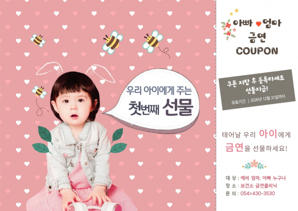 김천시보건소 건강증진과장은 “보건소를 방문하는 임산부와 가임기 부부가 등록권을 통해 태아 건강의 중요성을 다시 한번 인식하는 계기가 되기를 바란다.”라며, “태어날 아이에게 금연을 선물한다는 마음으로 보건소 금연클리닉을 적극적으로 활용해 주시길 바란다.”라고 말했다. |
