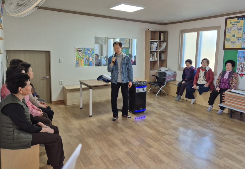 | 남면 행정복지센터(면장 정명수)는 3월 20일 옥산2리 경로당에서 어르신들을 위한 ‘찾아가는 가요 교실’ 행사를 진행했다.