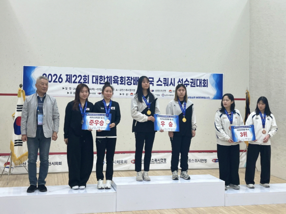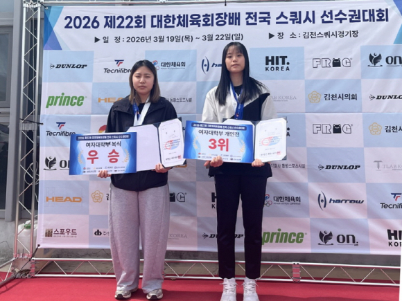 | 김천대학교(총장 윤옥현) 스쿼시부(감독 정창욱)가 2026년 제22회 대한체육회장배 전국 스쿼시 선수권대회에서 여자부 복식 우승과 개인전 3위를 동시에 차지하며 뛰어난 성과를 거두었다고 3월 23일 밝혔다.