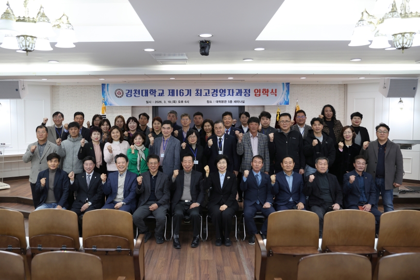 | 김천대학교(총장 윤옥현)는 3월 19일 대학본관 세미나실에서 제16기 최고경영자과정 입학식을 개최했다.