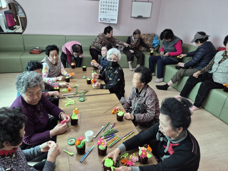 ‘궁중채화 화분 꽃 만들기 부터 활력 밴드체조까지... 경로당에 번지는 봄기운’