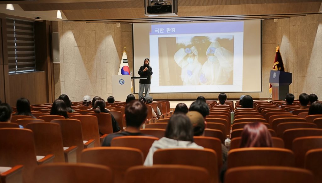 이날 특강에는 2019년 2월 간호학과를 졸업한 김희수 간호사가 강사로 참여해 ‘남극기지 파견 간호사 이야기’를 주제로 강연을 진행했다. 김 간호사는 국내 최초 남극 파견 간호사로서의 경험을 바탕으로, 특수 환경에서의 간호 역할과 준비 과정, 현장 적응 사례 등을 공유했다. 또한 제한된 의료 환경 속에서의 응급 대응과 간호사의 다중 역할 수행 경험을 구체적으로 전달하며 현장감 있는 강연을 펼쳤다.