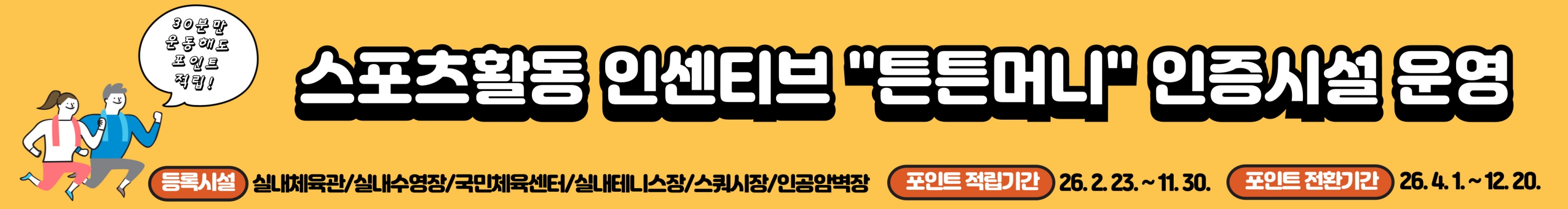 이에 따라 오는 11월 30일까지 해당 체육시설을 이용하는 시민들은 운동을 하며 포인트를 적립하고 다양한 혜택을 받을 수 있다.