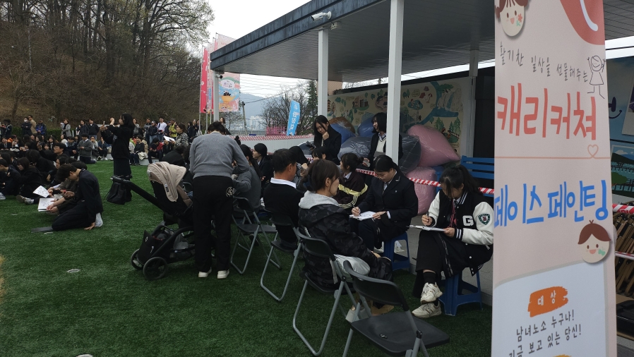 | 김천예술고등학교 학생들이 4월 2일 김천 연화지 일대에서 벚꽃길 버스킹 공연과 캐리커처·페이스페인팅 체험 행사를 운영하며 시민들과 문화예술로 소통하는 시간을 가졌다.