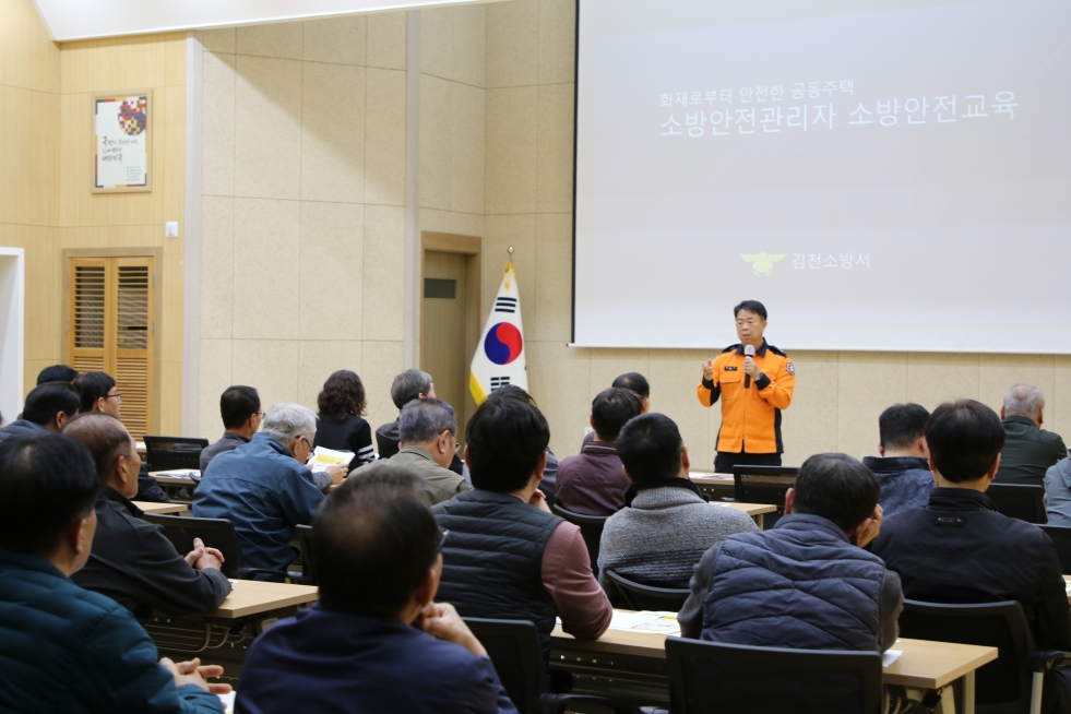이번 교육은 4월 2일 김천소방서 2층 대회의실에서 진행됐으며, 화재로부터 안전한 공동주택 환경 조성과 소방안전관리자의 실질적인 대응 역량 강화를 위해 마련됐다.
