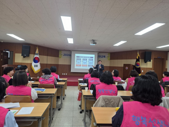 이날 교육은 손세영 사무국장이 강사로 나서 ▲2026년 경로당 보조금 정산 지침 주요 내용 ▲보조금 집행 기준 및 유의 사항 ▲보조금 집행 세부 지침 ▲정산 절차 및 증빙서류 작성 방법 등을 중심으로 진행됐다. 특히 실제 현장에서 자주 발생하는 사례를 바탕으로 한 설명을 통해 행복선생님들의 이해도를 높였다.