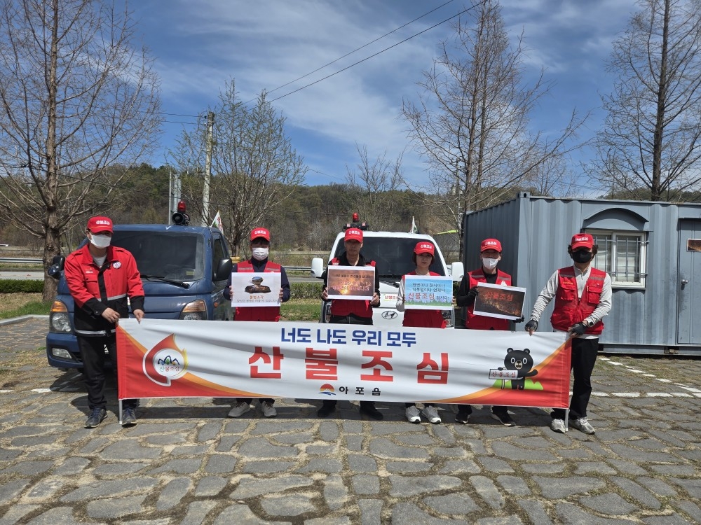 아포읍은 직원들과 산불 감시원의 산불 취약지역 순찰 강화와 비상근무 체계 유지 등으로 산불 대응에 만전을 기하고 있다.