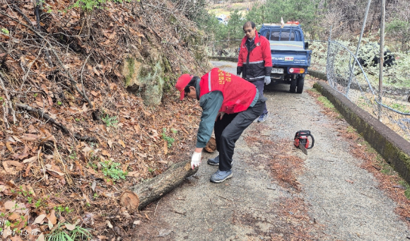| 지좌동 행정복지센터에서는 봄철 산불 조심 기간(3.1. ~ 5.15)을 맞아 산불방지에 총력을 기울이고 있는 가운데, 현장 최일선에 배치된 산불 지상 감시원의 능동적인 대처가 산불 예방의 수범 사례로 주목받고 있다. 지난 4일, 구역 감시 활동을 수행하던 산불 지상 감시원이 농로에 전도되어 통행을 가로막고 있는 대형 고사목을 발견했다. 해당 고사목은 건조한 날씨 속에 산불 발생 시 불김을 산림 내부로 확산시키는 ‘가연물’ 역할을 할 수 있는 위험 요인이었으며, 동시에 영농철 농기계 운행 등 주민 통행에도 큰 지장을 초래하고 있었다. 이에 산불 지상 감시원은 현장에서 즉시 기계톱 등 장비를 활용해 고사목을 절단 및 해체하고, 안전지대로 적치해 통행로를 확보하는 등 선제적인 안전 조치를 완료했다. 이는 단순히 화재 발생 여부를 감시하는 차원을 넘어, 잠재적 재난 요인을 직접 찾아 해결하는 적극 행정의 면모를 보여준 사례다. 지좌동 행정복지센터 배정화 동장은 “산불 지상 감시원들의 촘촘한 현장 밀착형 감시 활동이 대형 화마를 막는 가장 강력한 방어선”이라며, “앞으로도 철저한 예찰과 위험 요소 사전 제거를 통해 산불 없는 안전한 지역 사회를 만드는 데 행정력을 집중하겠다.”라고 밝혔다. |