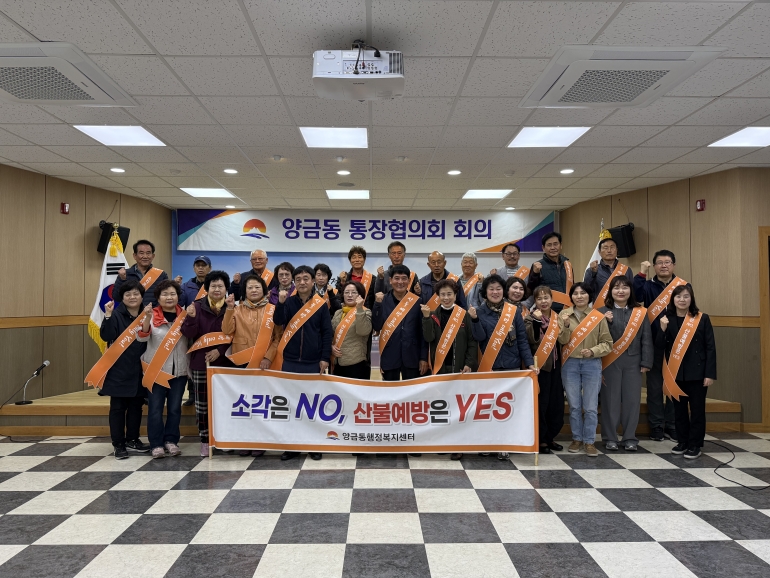 회의가 끝난 후에는 봄철 산불 예방 특별대책 기간을 맞아 산불 예방의 중요성을 알리고자 산불 예방 캠페인도 벌였다. 양금동 통장협의회는 지난 1월에도 산불 예방 교육을 하는 등 주기적으로 산불 예방을 위한 교육과 홍보를 이어오고 있으며, 이를 통해 통장들이 지역 주민들에게 관련 내용을 효과적으로 전달할 수 있도록 노력하고 있다.