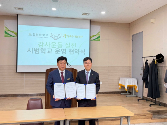 김천중학교 관계자는 “이번 협약을 통해 학생들이 감사의 가치를 생활 속에서 실천하며 바른 인성을 기를 수 있는 계기가 될 것”이라며, “지속적인 프로그램 운영을 통해 따뜻하고 존중하는 학교문화를 만들어 나가겠다.”고 밝혔다.