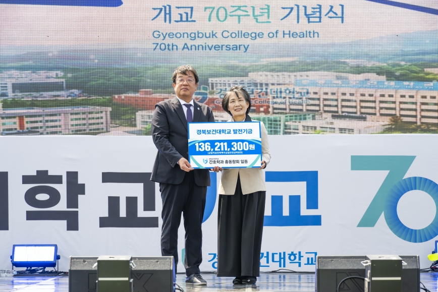 경북보건대학교 이은직 총장은 간호학부 총동창회의 뜻깊은 기부에 깊은 감사를 전하며, “이번 기부는 단순한 금전적 지원을 넘어 70년 간호교육의 전통과 자부심이 다음 세대로 이어지는 상징적인 의미를 지닌다”며 “소중한 뜻이 학생들의 성장과 교육환경 개선에 의미 있게 사용될 수 있도록 최선을 다하겠다”고 밝혔다.