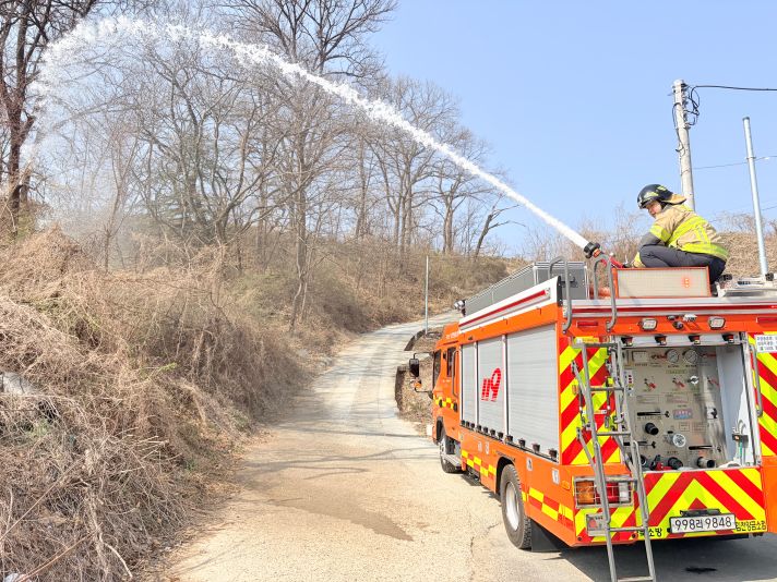 운영은 매주 금요일 및 기상특보(건조, 강풍) 시 수시로 실시되며 ▲차량 통행이 많은 산림 인접 도로변 ▲등산객 이동이 많은 등산로 주변 ▲산림 인접 마을·사찰·문화재 주변 등을 중심으로 소방차량을 활용한 집중 살수 활동을 펼친다. 아울러 산불 예방 홍보방송도 병행해 시민들의 경각심을 높일 계획이다.