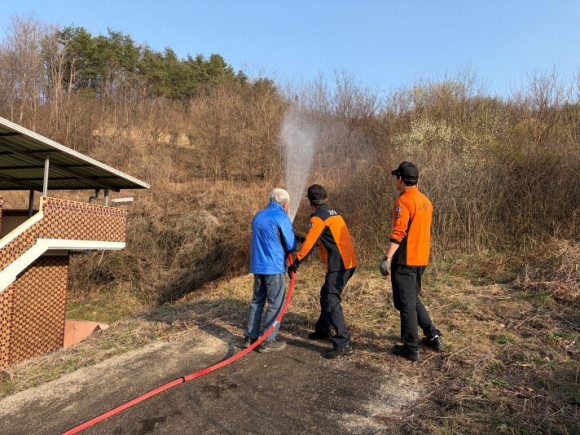 ‘예비주수의 날’은 산불 위험이 증가하는 봄철을 맞아 산림 인접 민가와 주요 시설물에 사전 살수를 실시해 대형 산불을 예방하고 화재 확산을 사전에 차단하기 위해 추진된다.