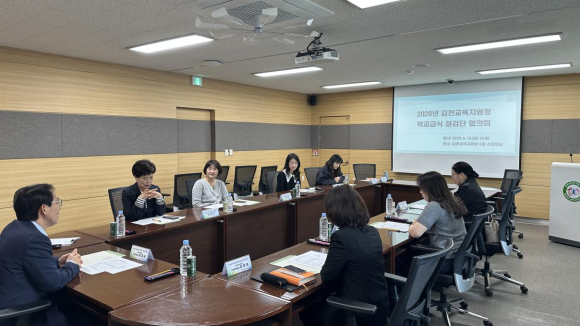 | 경상북도김천교육지원청(교육장 모태화)은 4월 14일 교육지원청 소회의실에서 학교급식의 안전성을 확보하고 위생 관리 수준을 높이기 위한‘학교급식 점검단 협의회’를 개최했다.